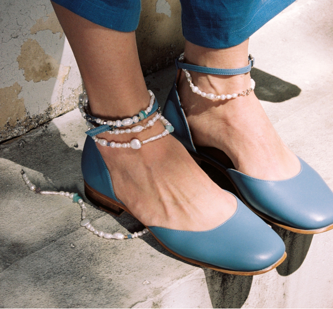 Изящные анклеты (браслеты на ногу) из натурального жемчуга. Их можно купить отдельно или в дополнение к паре обуви — тогда цена на них будет ещё приятнее.